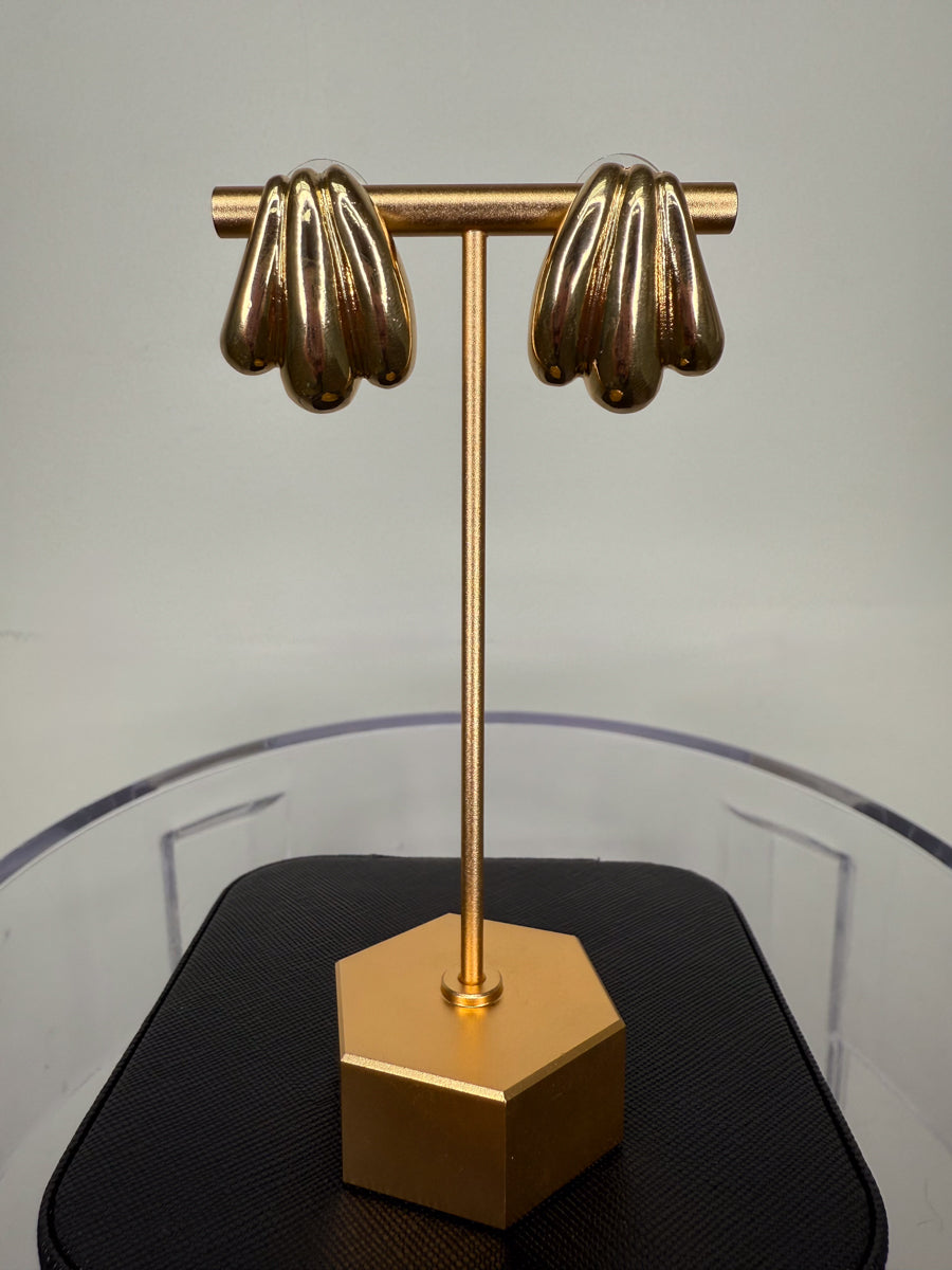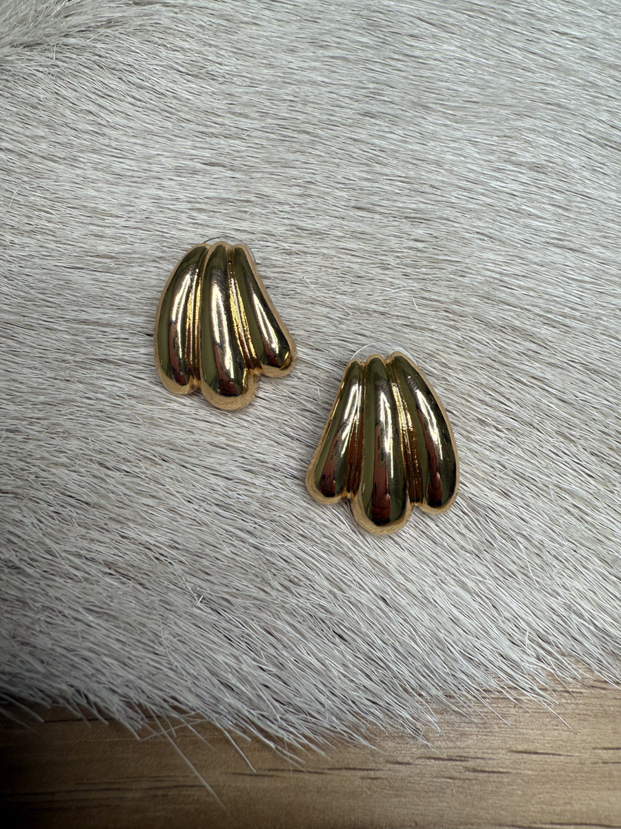 Add some sparkle to your outfit with the Ariel Shell Stud Earrings. These statement studs feature a bold, shell shape and metallic finish. Available in Gold; style with a cute mini dress when in doubt!