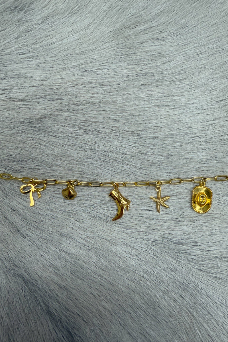 Elevate your casual outfit or add to your festival look with our Hannah Cowgirl Charm Pendant Necklace. With a playful link chain and quirky cowgirl charms, this necklace is sure to bring a touch of fun to any occasion. Available in gold for a trendy touch.