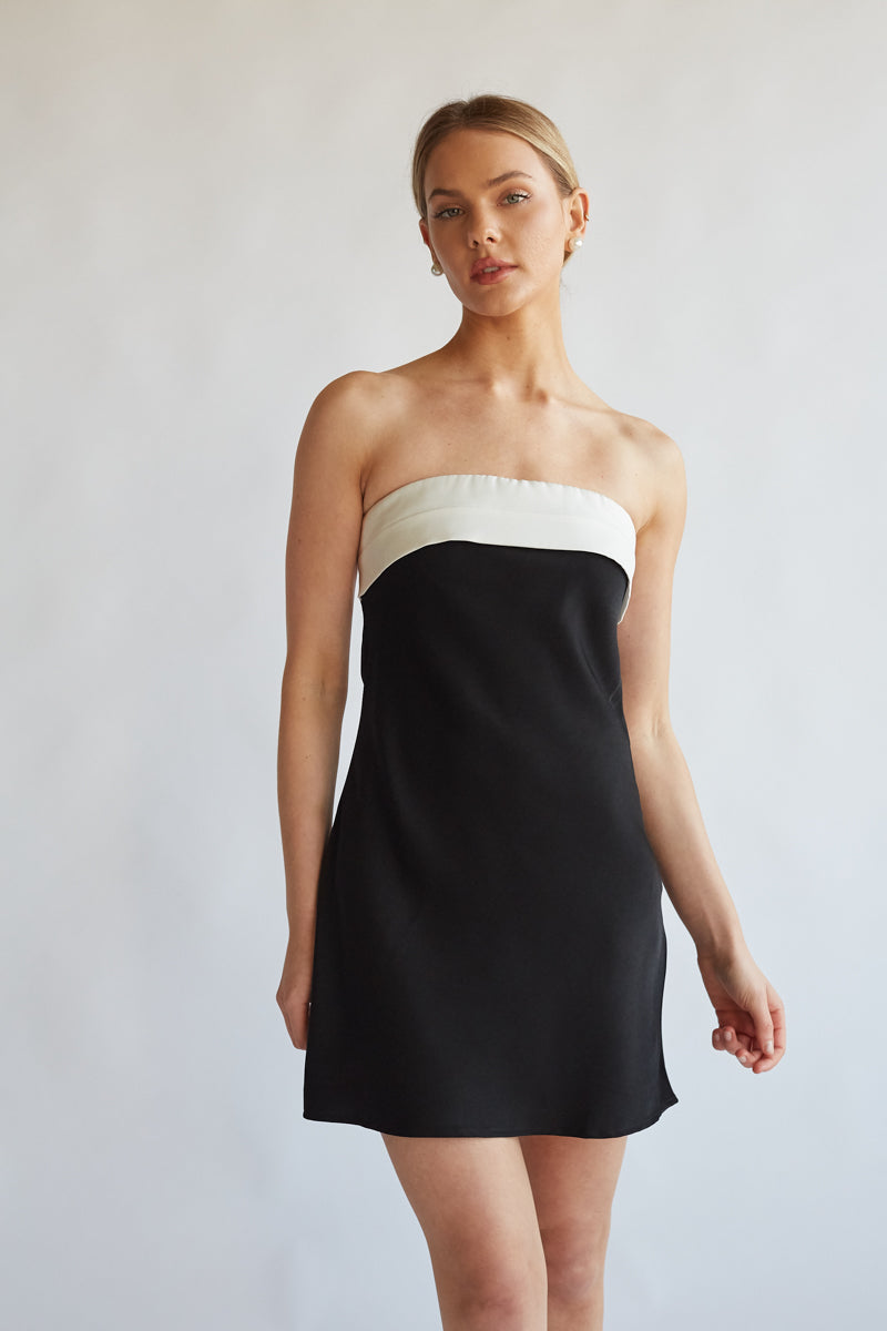 Get ready to WOW in the Josie Strapless Open Back Mini Dress! This chic dress features a strapless straight across neckline with a fold over trim and an open cowl back with a smocked strap. Available in cobalt blue, cherry red, periwinkle blue, white, rose, black & white contrast, wine, and black. Pair with a cute to complete the look!